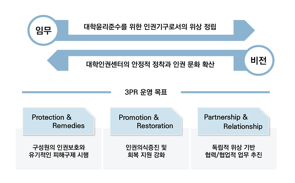 인권의 가치가 캠퍼스 곳곳에 스며들고 인권의 보편성이 실현되어 인천대학교 구성원들이 존엄성을 누리고 사람답게 살 수 있도록 하는