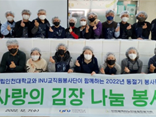 소개 우리대학 구성원들이 주체가 되어 지역사회 및 캠퍼스 내 봉사활동을 통해 지역사회 발전 및 환경에 도움이 되는 다양한 사회공헌 활동을 실천합니다. 활동내용 사랑의 김장 및 연탄 봉사활동 함께해요! 클린인천대! 플로깅캠페인 제로웨이스트 문화확산을 위한 교직원봉사단 교육 자립청소년을 위한 친환경생활용품 기부 참!좋은 사랑의 밥차 봉사활동